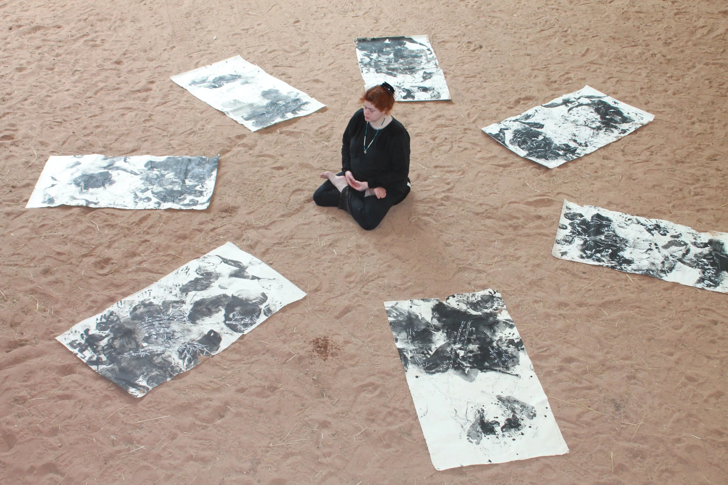 Les doigts des bambous déferlent sur le papier et mon corps de femme embrasse la surface du miroir de l’Univers au rythme des maux de la vie.